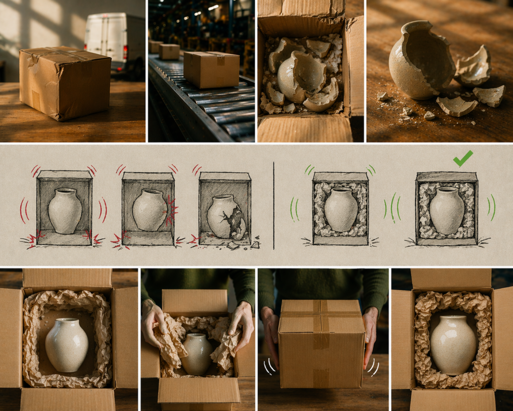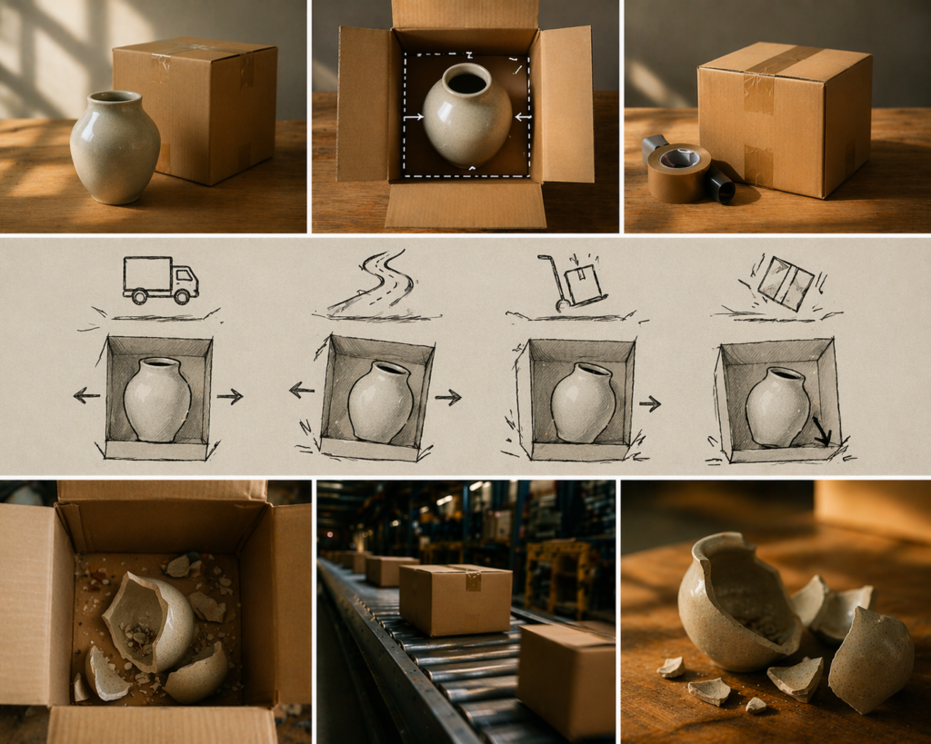 Picture placing an item into a box with nothing else around it. It fits, but there’s space on the sides. You close the flaps, tape it, and send it out. Everything looks fine at that moment. But once it’s moving, that item starts to shift. Every turn, every stop, every small drop turns into a bump inside the box.